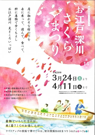 東京の深川で2018年3月24日から「第14回お江戸深川さくらまつり」が開催されます。